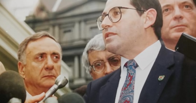 Two of my mentors in one photograph: on the left, Uri Lubrani; on the upper right, Itamar Rabinovich. Between them, Elyakim Rubinstein. Occasion: 1992 peace talks in Washington. Lubrani led the Israeli talks with Lebanon; Rabinovich, then Israeli ambassador to the United States, with Syria; Rubinstein, with Jordan and the Palestinians.