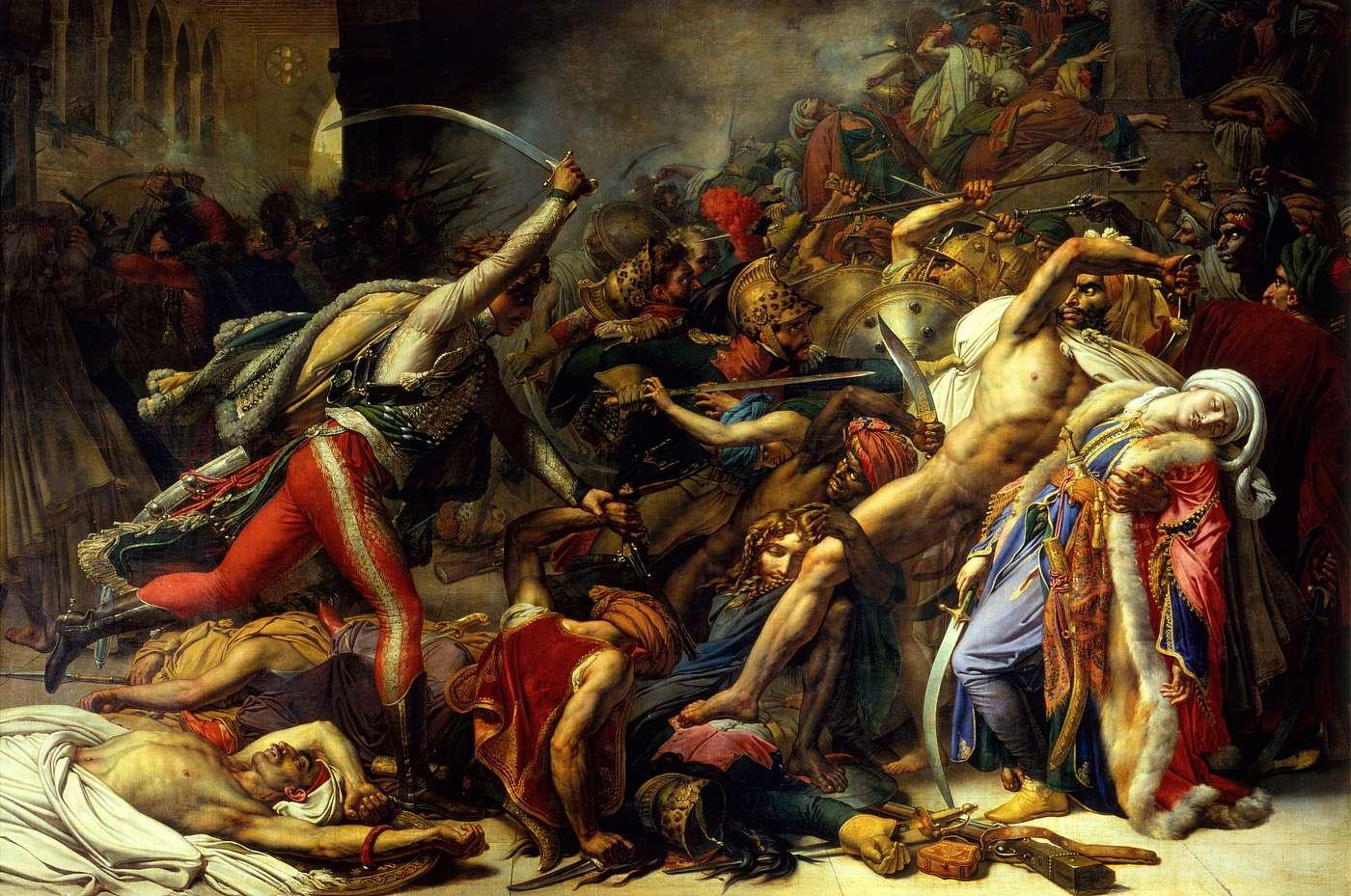 The young Delacroix—only 26 when he finished the painting—was inspired by the Greek War of Independence from Ottoman rule, which began in March 1821. “I am thinking of doing a painting for the next Salon on the subject of the recent wars between the Turks and the Greeks,” he wrote to a friend in the fall of 1821. “I think that under the circumstances, this would be a way of distinguishing myself.”