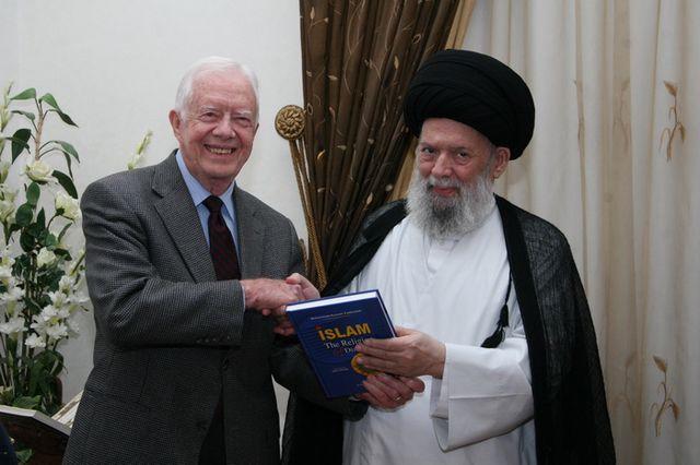 He was a permanent stop on the circuit for foreign dignitaries, some of them pursuers of Islamist “moderation.” They would see him (after stringent security checks), get their photo taken with the wise man, and come away pondering his elliptical comments. Last year Jimmy Carter turned up (photo), much to the chagrin of the State Department, and Noam Chomsky paid his respects last May (photo). Within Lebanon, he built a substantial empire of charitable institutions such as schools and clinics, many of them funded by wealthy Shi’ites outside the country. The institutions will long outlive him.
